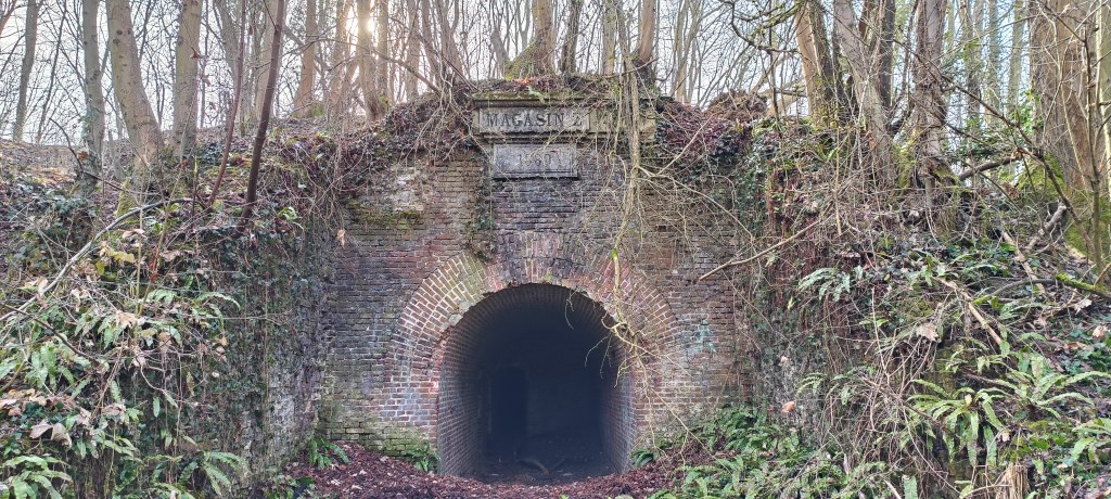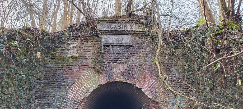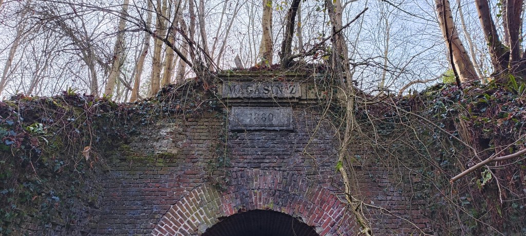 C’est un ancien magasin de munition qui est un des vestiges du long passé militaire de La Fère. Un peu caché, il se trouve au bout d’un chemin longeant un étang. Une date est encore visible comme sur beaucoup de batiments militaires de l’époque et sa construction semble être une réponse à la guerre franco-prussienne.
