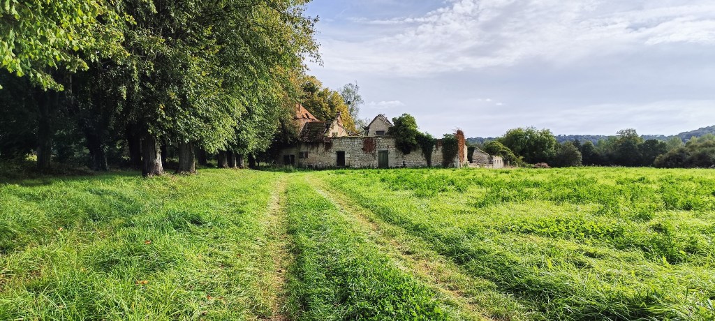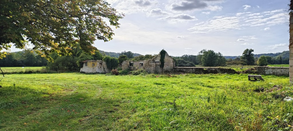 C’est aux ruines de l’ancienne ferme dite du Bain des Dames que notre visite a commencé. Malheureusement, nous n’avons pas trouvé d’informations en particulier sur cette ferme à part qu’elle est déjà présente sur les cartes d’État-Major. Nous avons juste pu nous imaginer ce que devait être la vie ici près du château dont il est encore possible d’en avoir une magnifique vue.