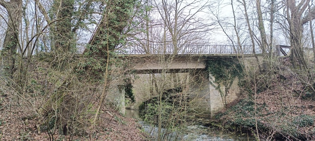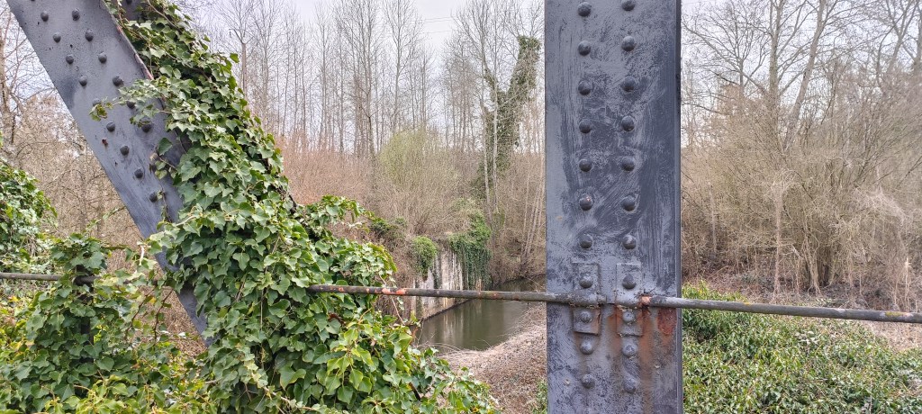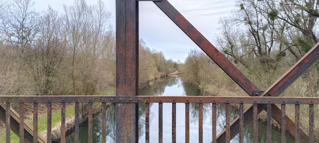 Dès notre arrivée, nous sommes tombés sur un premier pont, qui enjambe à la fois l’Ailette et le canal de l’Oise à l’Aisne, qui n’était pas celui que nous comptions aller voir mais qui s’est avéré être agréable à arpenter, au milieu de cette végétation assez nue en ce mois de Mars.