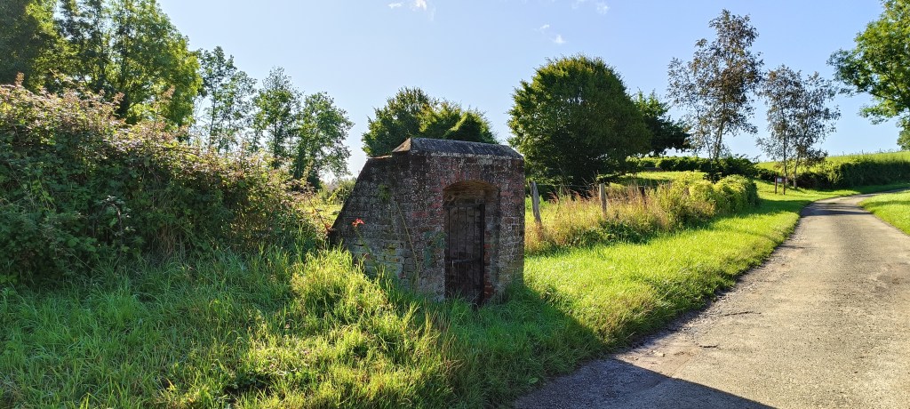 À la sortie de Villequier-Aumont sur la route de Guiscard, en prenant la direction d’Ugny-Le-Gay, se dresse une petite chapelle et sa fontaine aux abords du hameau de Guyencourt.