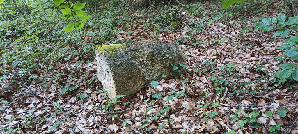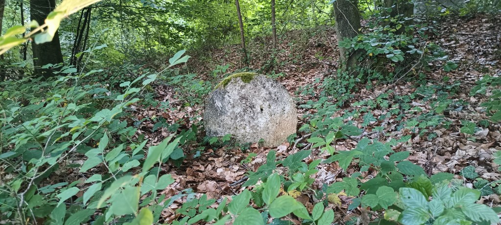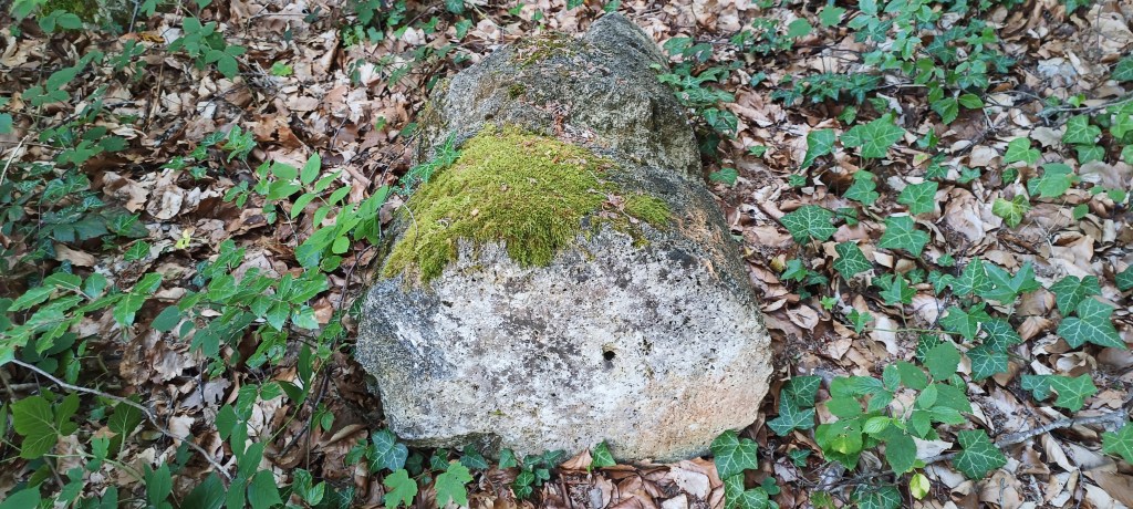 En allant faire un tour derrière, nous sommes tombés sur quelques pierres éparpillées et une plus grosse de forme cylindrique, est-ce simplement une coïncidence ou sont-elles les restes d’un ancien monument ? C’est un mystère…
