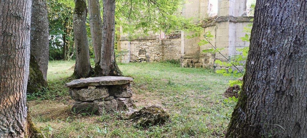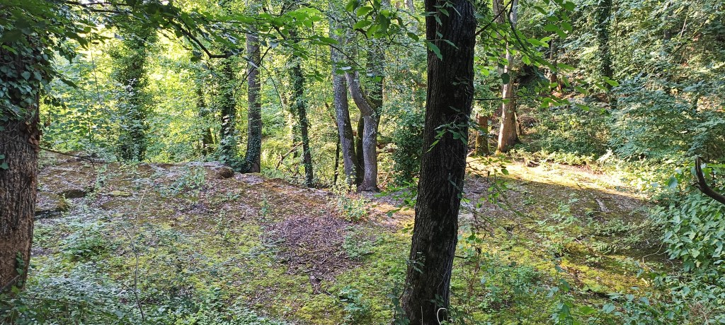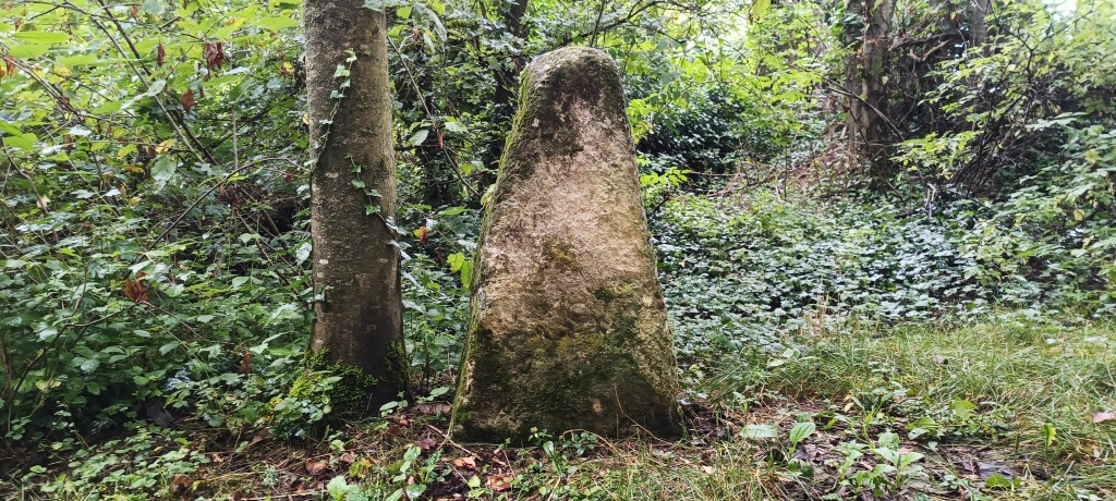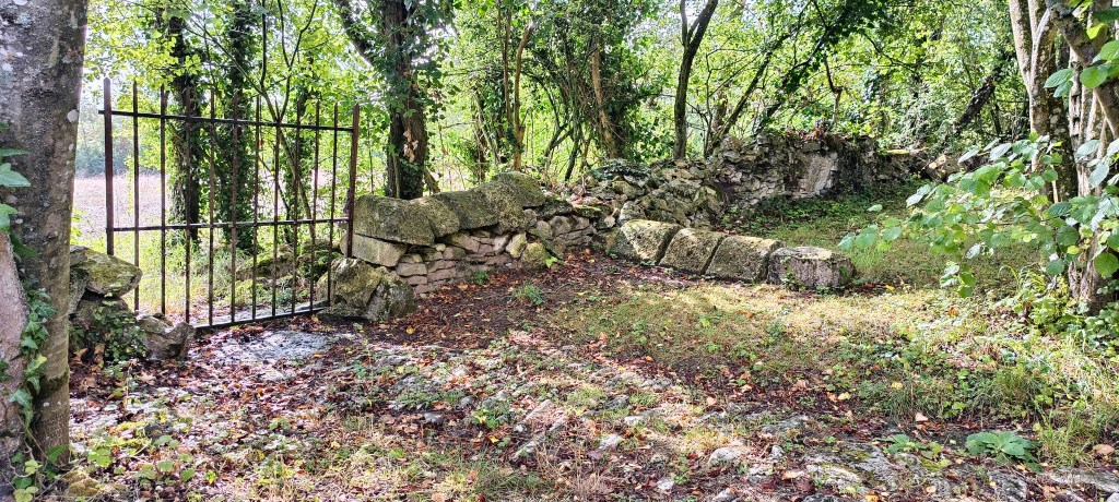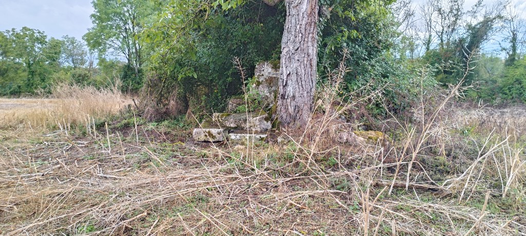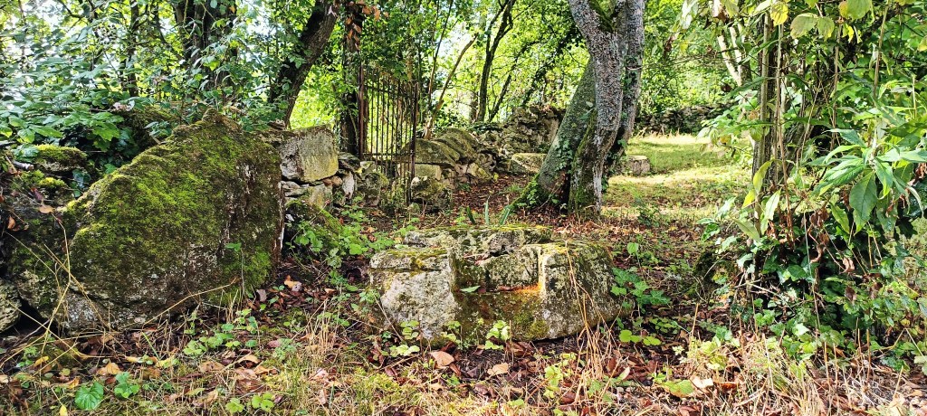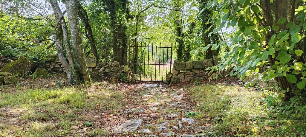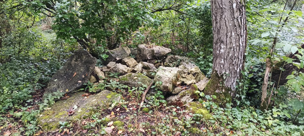 Petit arrêt près du portail où nous avons été interpelé par un amas de pierre se situant à quelques dizaines de mètres de ce dernier. Il s’agit d’un ancien calvaire visiblement plus très en forme et son rôle, d’après le descriptif sur le panneau de la carrière, « était, sous le régime féodal, de placer en franchise le chemin qui traversait la terre féodale. »
