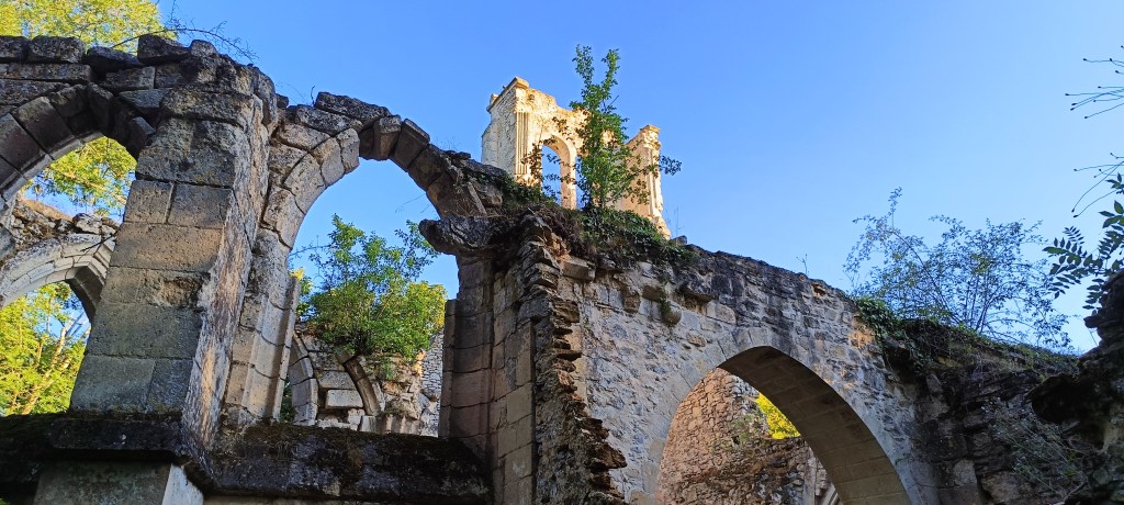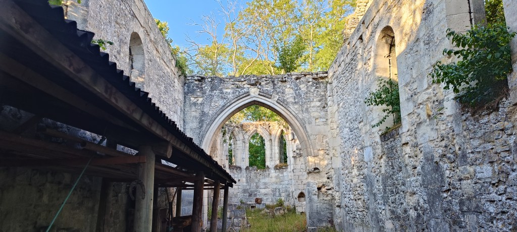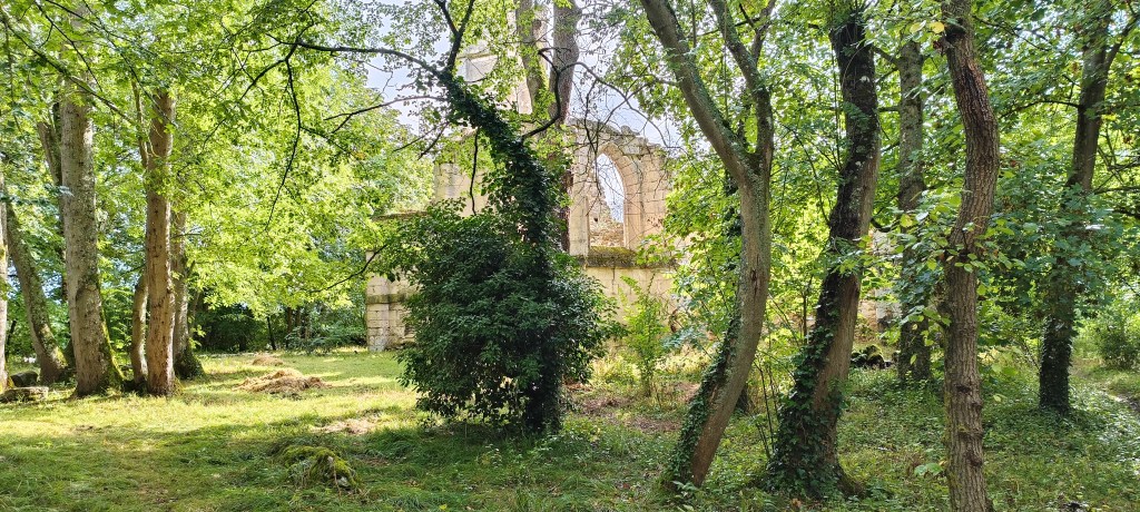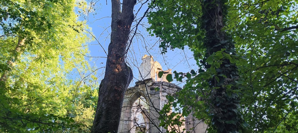 Évidemment nous avons été saisi par la beauté de l’endroit, surtout que nous sommes toujours particulièrement sensibles aux ruines perdues dans la forêt. Sur place, quelques panneaux posés ça et là par le propriétaire des lieux nous donnent de précieuses informations sur l’histoire de cet édifice, où l’on en apprend plus sur son lent abandon…