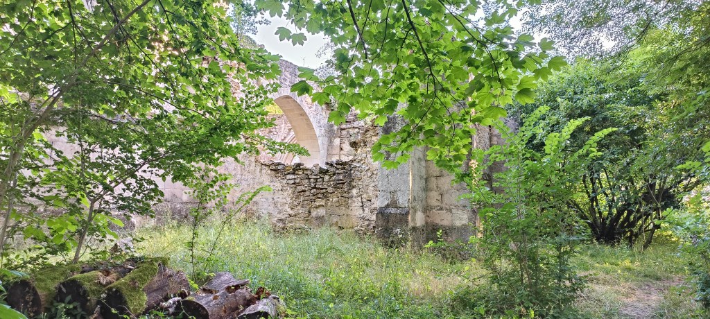 Quelques ruines sont présentes si on sort un peu du chemin entourant l’église, mais nous n’avons pas réussi à définir ce qu’elles avaient pû etre…