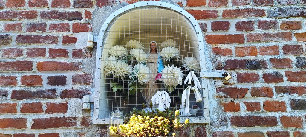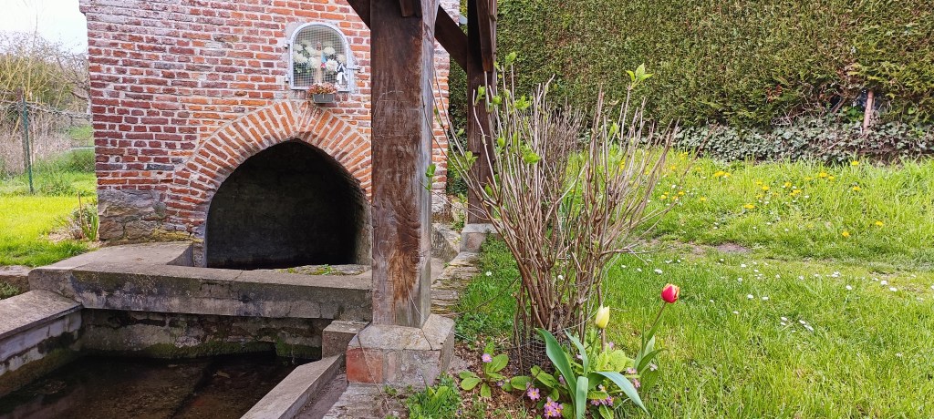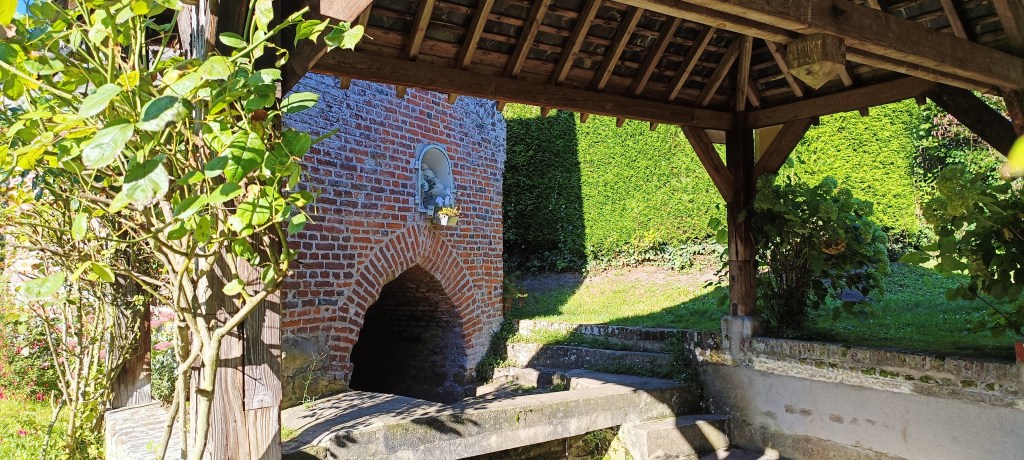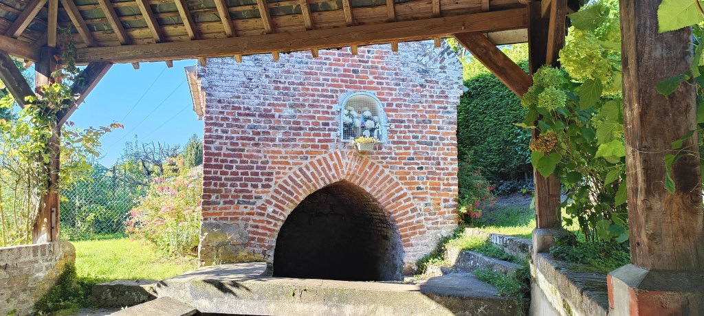 Il ne faut bien sûr pas oublier de mentionner le bâtiment jouxtant le lavoir qui se trouve être la fontaine Notre-Dame. Elle a aussi des airs d’oratoire avec ce creux acueillant une statue de la Vierge.