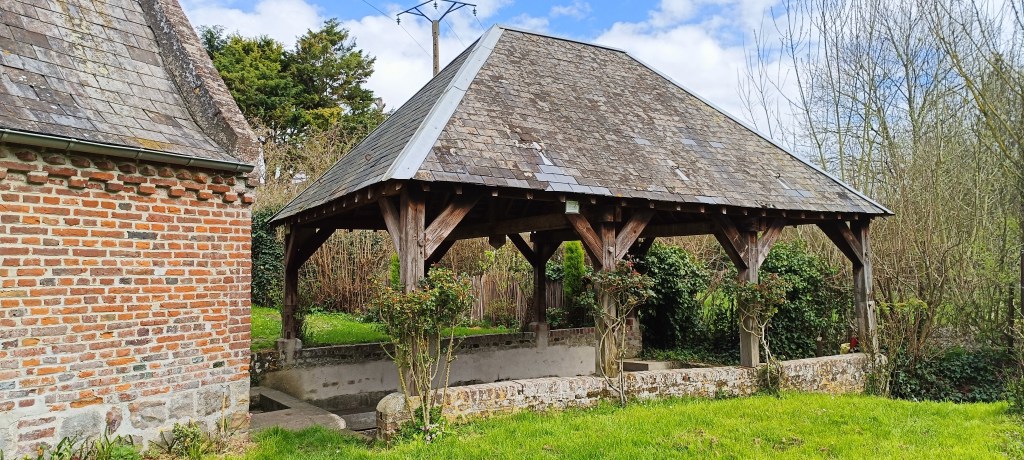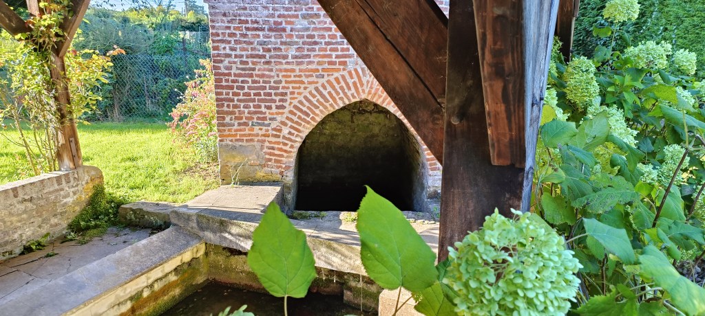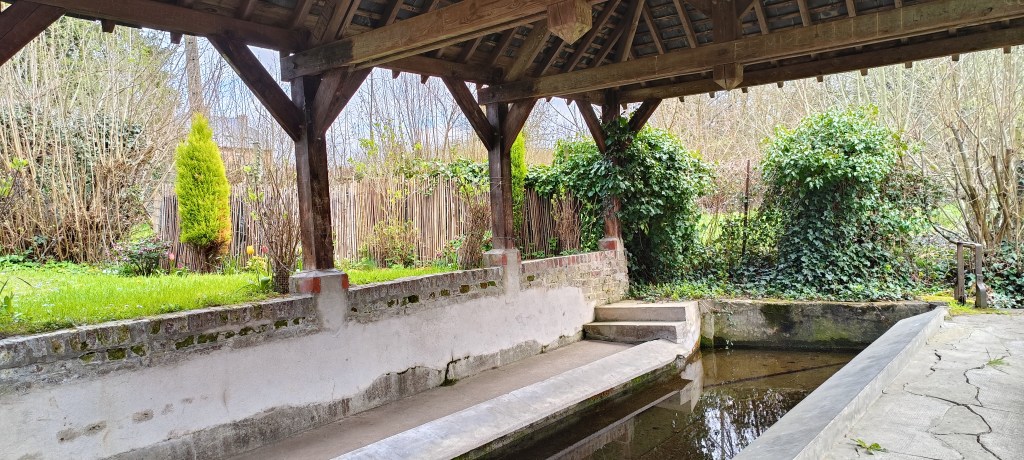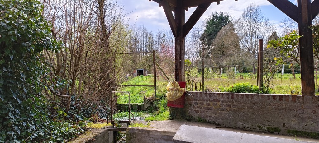 C’est donc après avoir pacouru un tout petit chemin très charmant qu’il est possible de tomber sur le lavoir. Il se situe entre plusieurs jardins, ce qui fait que l’espace pour le photogaphier est assez restreint, d’où la difficulté pour avoir une vue d’ensemble du lieu…