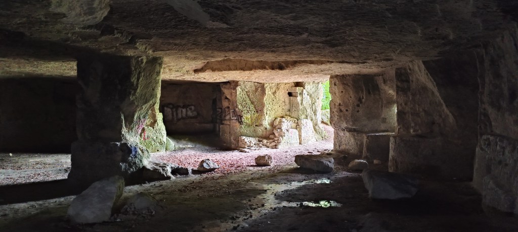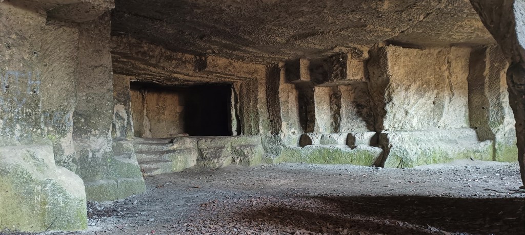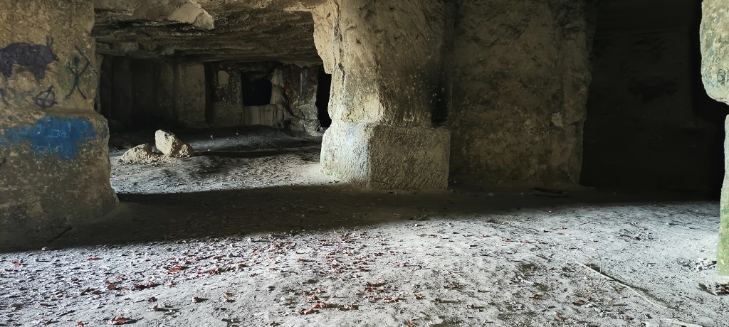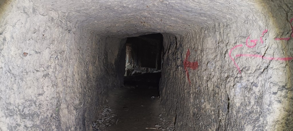 La carrière en elle-même se révèle quelques centaines de mètres après. Située sur un flanc rocheux, c’est toujours un plaisir de voir apparaître les différentes galeries petit à petit.