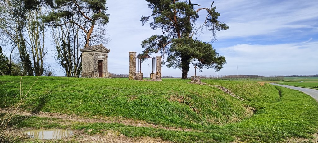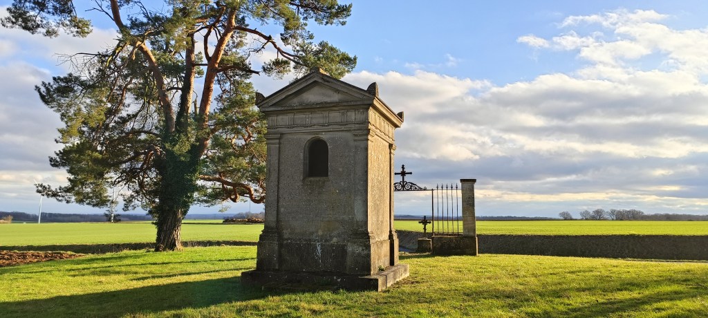 Elle se trouve donc en bord de route, entourée par des champs et est isolée de toute autre tombe et du cimetière qui se trouve à quelques centaines de mètres, là où elle semble plus avoir sa place.